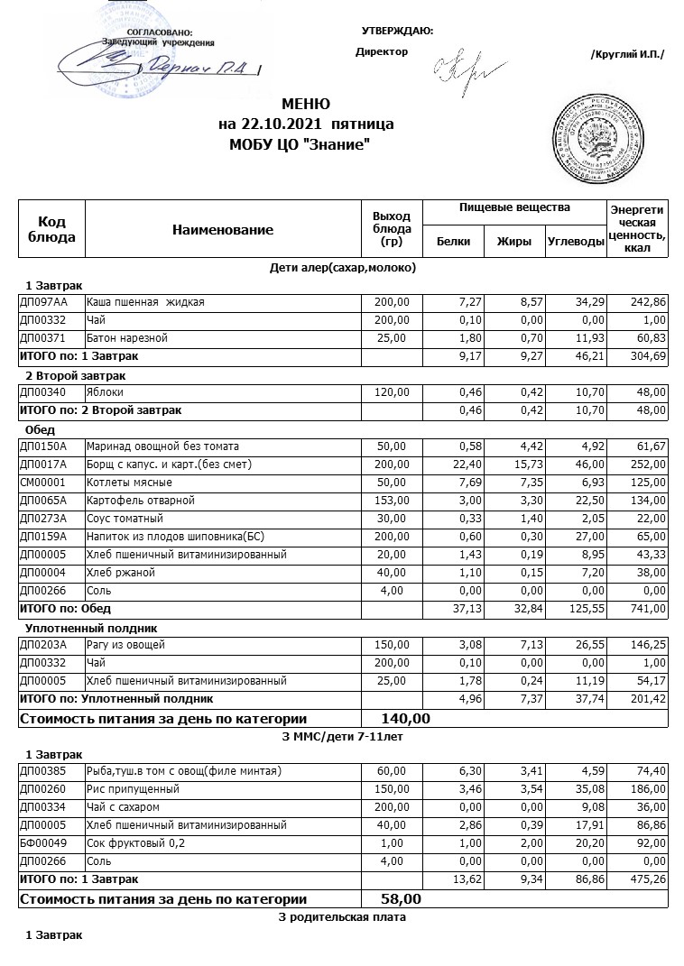 (Меню 22.10.2021)
