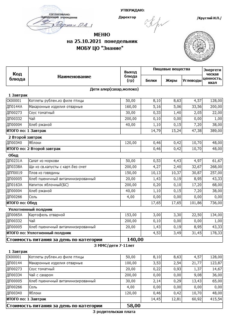 (Меню 25.10.2021)