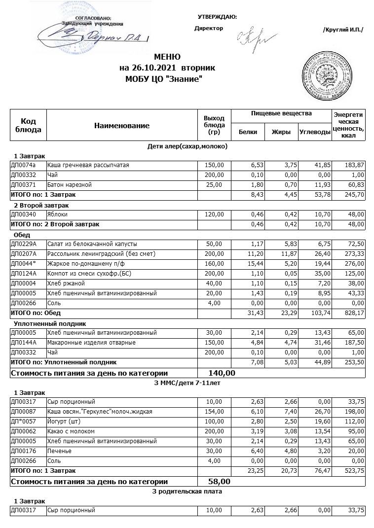 (Меню 26.10.2021)